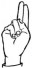 На ћирилици написано ЈАБУКА ДУЊИЋ састоји се из 11 слова [?]. Исписано ћириличном једноручном азбуком за глувонеме: